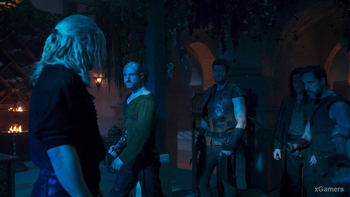 Но что более любопытно – это сцена боя опять же в стенах храма (если мы не ошибаемся) Геральта с братьями Мишеле, которых послал Риенс. В подтверждение этому может служить сцена из первого тизера, когда Цири останавливает девушек от бегства из храма.