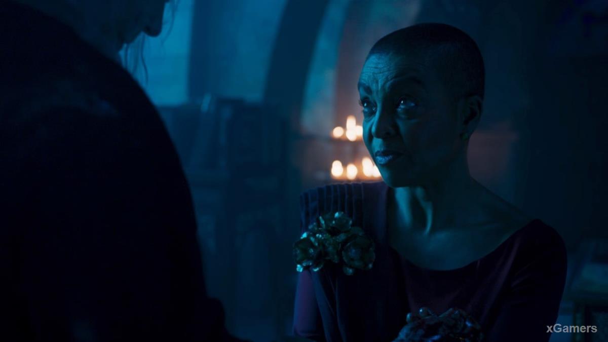 На кадре ниже, мы вероятнее всего наблюдает сцену из видений юной Цири. Согласно книгам, Трисс пребывает в Каэр Морхена по зову ведьмаков, чтобы помочь им истолковать пророческие силы Цириллы, которые предстали перед ними после того, как девушка выпила одно из ведьмьих зелий.